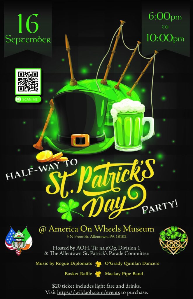 Hosted by the AOH, Tir na n’Og, Div. 1 and the Allentown St Patrick’s Parade Committee