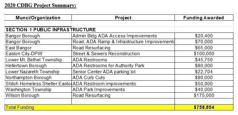 Please note: Eligible applicants are the 36 boroughs and townships participating in Northampton County’s Urban County CDBG Entitlement Program. The City of Bethlehem receives its own CDBG funding directly from HUD. Therefore, projects in the cities are eligible only to the extent that they serve residents of the county’s boroughs and townships.