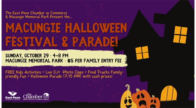 “The East Penn Chamber can’t wait to be a part of the spooktacular fun taking place in Macungie this year!” stated Sarah Yost, Assistant Manager of Affiliated Chambers, East Penn Chamber of Commerce. “We are thrilled to partner with such a dedicated group of Macungie volunteers. Working with local businesses and organizations like Macungie Memorial Park energizes our communities and spreads the feeling of camaraderie and joy.”