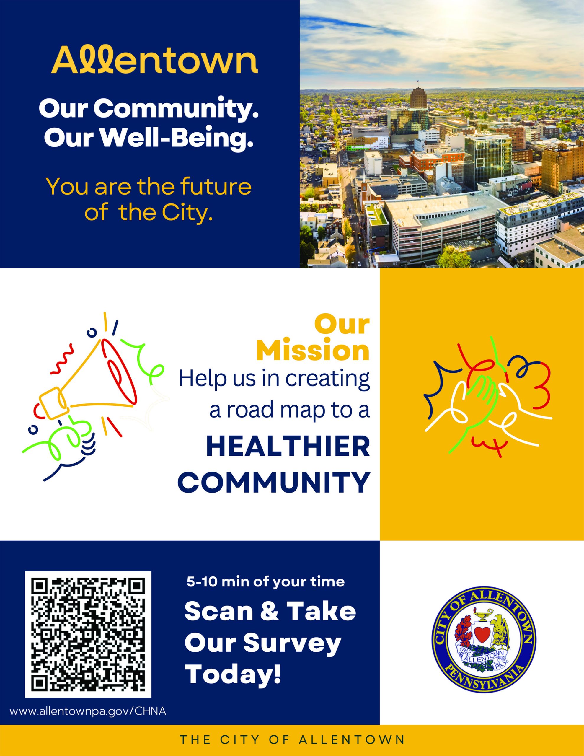 October 10, 2023 – The City of Allentown has launched the Health Bureau’s inaugural Community Health Needs Assessment (CHNA), inviting residents to participate in a short survey to identify and prioritize the most pressing health needs within the community.