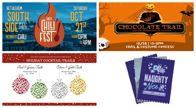 Trail attendees purchase event passports online. They show those passports at downtown businesses to pick up their cocktails, beer, chili, or whatever else a trail might feature for that event. “It’s such a fun way to get people into shops and restaurants that they may never have visited before,” said Brittney Ciardi, Assistant Vice President of the Bethlehem Chamber of Commerce. “They often do some shopping along the way and many become repeat customers. So, the benefits extend far past the day of an event.”