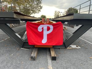 Once secured on the site, Dorney Park team members draped a Phillies flag on the track piece making it official… the Iron Menace is a Phillies fan.