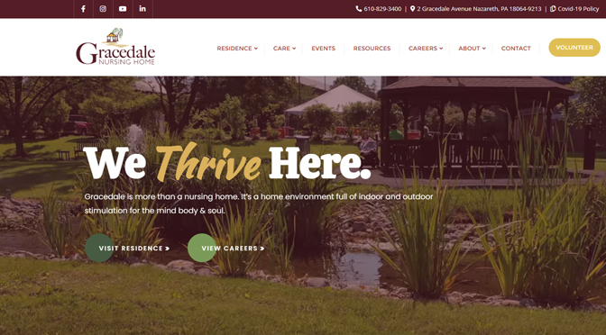Some of the key features of the website include streamlined access to Gracedale’s care services, including Long-Term Residency, Short-Term Rehabilitation, Memory Care, and Respite Care; job openings with detailed employee benefits (pension/retirement plan, competitive medical, dental, and vision, employer paid life insurance, tuition assistance/reimbursement, paid vacation, sick, and personal leave; volunteer opportunities; and upcoming events.