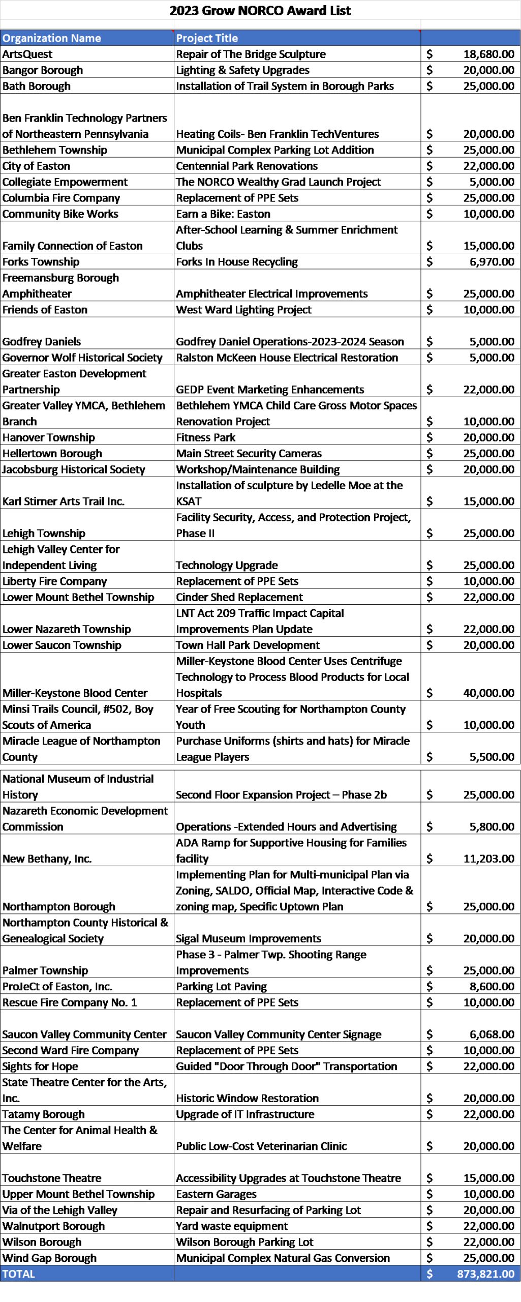 Grow NORCO Program grants are available to Northampton County non-profit organizations and municipalities. Grants of up to $50,000 can be used for Capital Improvements, Façade Programs, Operations, and Community Planning. All projects funded must be completed within Calendar Year 2024.