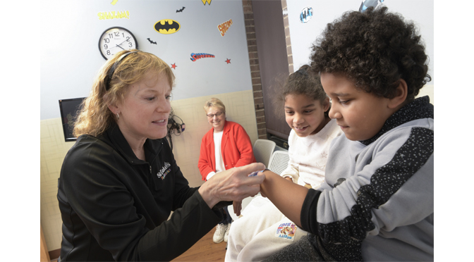 Featured Image: Grandmother Robin Geiger watches as case manager Terry Gregg, RN, talks with her twin grandchildren, Sunny and Tizlam Gordon, at Star Community Health Pediatrics in Easton.