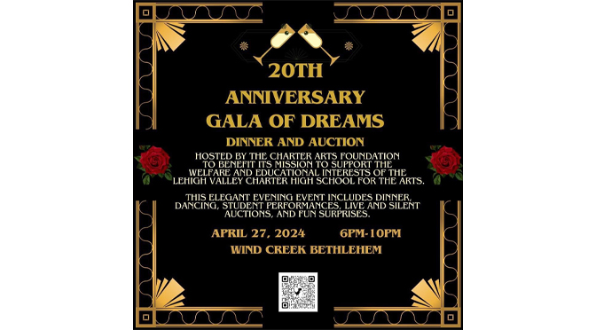 Proceeds from the event will benefit the Charter Arts Foundation’s mission to support the welfare and educational interests of the Lehigh Valley Charter High School for the Arts.