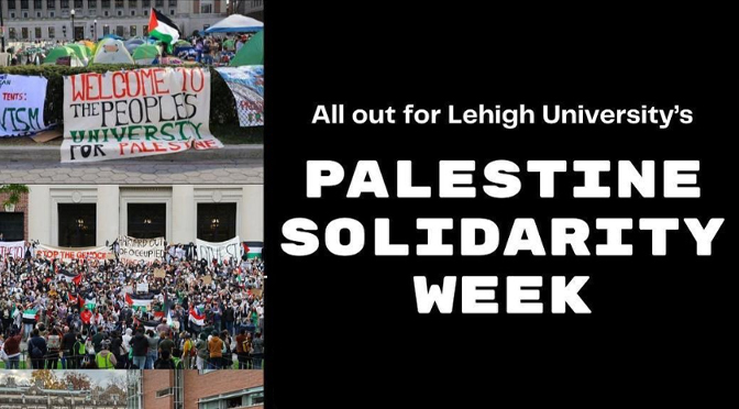 Bethlehem, PA – In solidarity with student protests around the country, Lehigh University students host a “Solidarity Week for Palestine.” The week of peaceful activities include