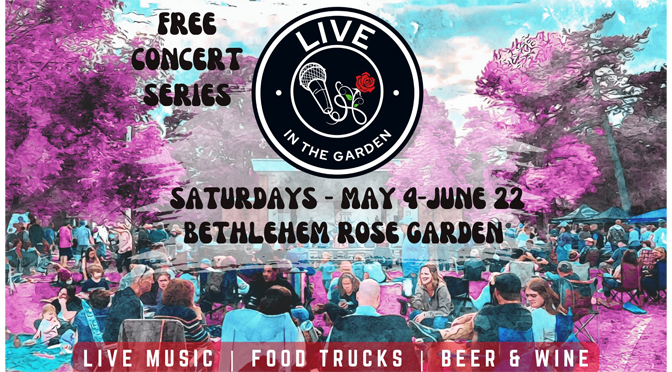 Live in the Garden takes place every Saturday from May 4th to June 22nd, from 5:30 PM to 8:00 PM in the Bethlehem Rose Garden.