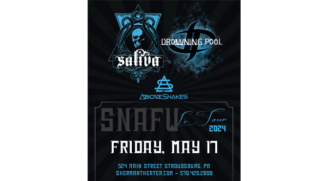 May 7, 2024 – Stroudsburg, PA – Saliva and Drowning Pool are headed to the Sherman Theater in Stroudsburg, PA on May 17 with special guests Above Snakes.
