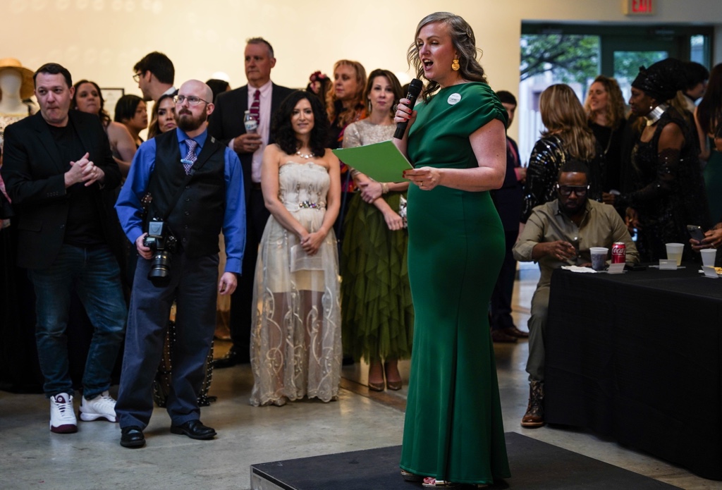 Serving as the hostesses for the evening were Lisa Harms, Artsquest Sr Director of Visual Arts and Education and assistant Ally Brown. These two enthusiastic ladies kept the party going, as they covered the events of the evening, offering introductions to the models and judges, and fun banter between them.