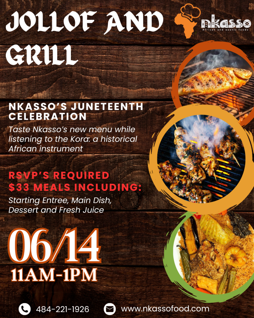 Allentown, PA – May 22, 2024 Nkasso, the flavorful culinary destination in Downtown Allentown, is thrilled to announce a special celebration for Juneteenth in partnership with the Allentown Chamber of Commerce on Friday, June 14th. From 11:00 AM to 1:00 PM, guests are invited to join a memorable experience featuring a brand-new African Fusion Menu, the sounds of Kora music, and a traditional cultural experience.