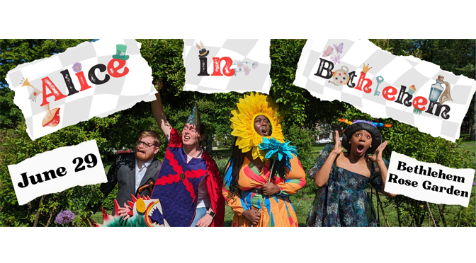 Alice in Bethlehem takes place on June 29, 2024 at 5pm at the Bethlehem Rose Garden. Tickets are free, with donations always welcome. Sturdy shoes, sunscreen, and bug repellant are all highly encouraged! For more information about the event, please visit www.touchstone.org.