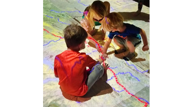 Visitors will experience a “feet to earth” exploration that takes them across the landscape. As you walk along, you will see everything from state borders to lakes and rivers, mountain ranges to parks and trails. Explorer also features two colorful Geoshows on the Native American presence in Pennsylvania. One focuses on the network of native trails that formed the foundation of the modern transportation network. The other animates the rich artifactual legacy of Lenape, focusing on petroglyphs found throughout Pennsylvania. Finally, a third Geoshow highlights bird migration along the Atlantic Flyway.