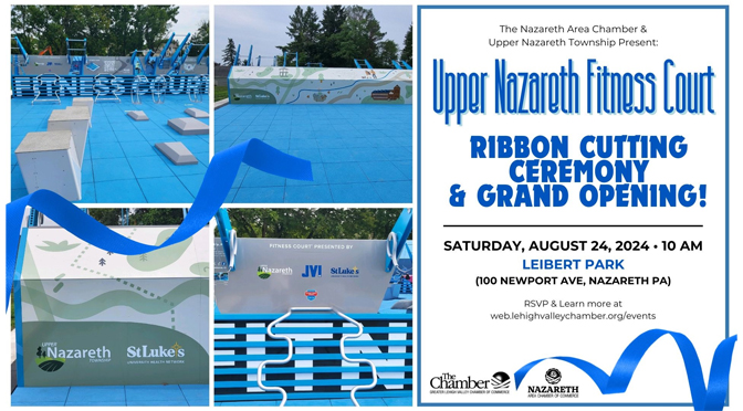 The Nazareth Area Chamber, a proud partner of the Greater Lehigh Valley Chamber of Commerce will host a ribbon cutting ceremony for Upper Nazareth Township’s Fitness Court. The Ribbon Cutting which will promptly be held at 10:00 am at Leibert Park will be a celebration of the community’s new fitness courts!