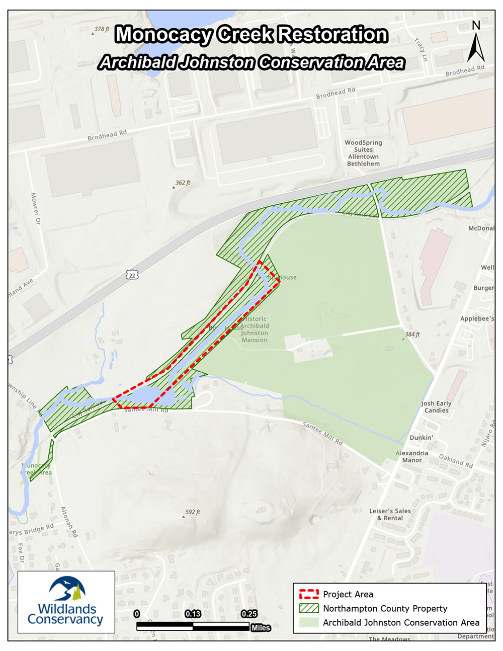 “The Monocacy Creek is a community treasure, and while it holds this state designation, the section that flows through Archibald Johnston is being significantly degraded by the old dams, access bridges, and crossing areas that were built long ago, long before water quality, habitat conservation, and comprehensive watershed management planning were local priorities,” Northampton County Executive Lamont G. McClure. “Given their demonstrated stream restoration expertise, the County is extremely grateful to partner with Wildlands Conservancy to help advance the health of the Monocacy.”