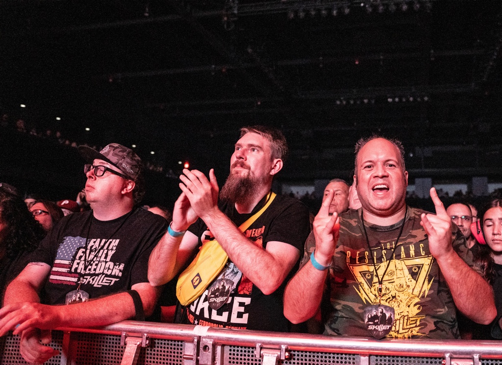 Skillet took the stage around 9:30pm. They’re a Christian rock band that formed in Memphis, TN and include husband and wife, John and Korey Cooper, Jen Ledger, and Seth Morrison. In 28 years, they’ve released eleven studio albums, with two Grammy nominations. Purple haired, Korey Cooper, guitarist, put on an amazing performance as she rocked the stage in the opener, “Feel Invincible”. Things got real when John Cooper strapped smoke guns on his arms and white smoke billowed during “Surviving The Game.” Skillet performed a twelve-song set, closing with “Monster” and “The Resistance”. As the concert ended, there were many fans who left happily satisfied and exhausted from the night’s entertainment.