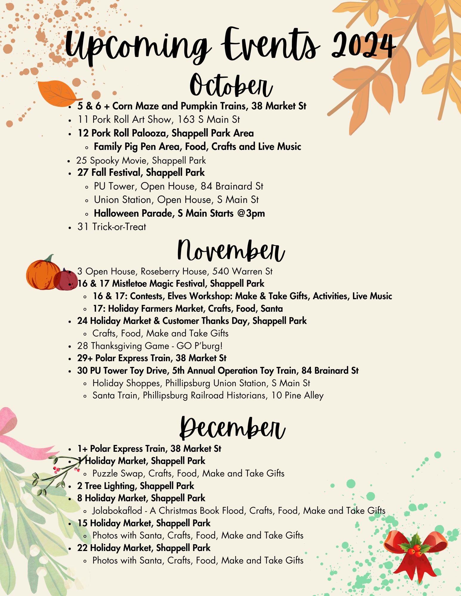 Press Release Upcoming Events In Phillipsburg October 3, 2024 The Valley Ledger Information provided to TVL by: Elizabeth Judge Wyant
