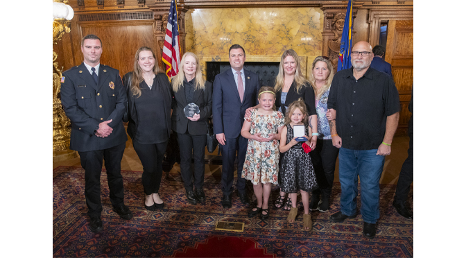 Photo of Mackenzie with the families of the two firefighters provided by: PA House GOP News