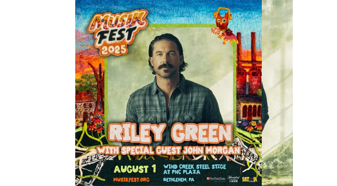 Bethlehem, Lehigh Valley, PA., November 11, 2024 – ArtsQuest is excited to announce the first Musikfest 2025 headliner, country star, Riley Green! Green will be coming to the Wind Creek Steel Stage at PNC Plaza with opener John Morgan on Friday, August 1.