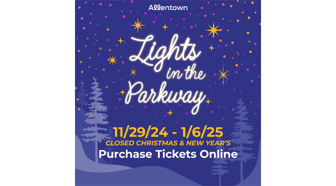 November 12, 2024 – The City of Allentown is excited to announce the return of Lights in the Parkway, an annual holiday tradition lighting up Lehigh Parkway from Friday, November 29, 2024, through Monday, January 6, 2025, from 5:30 to 10 p.m. (closed on Christmas Day and New Year’s Day).