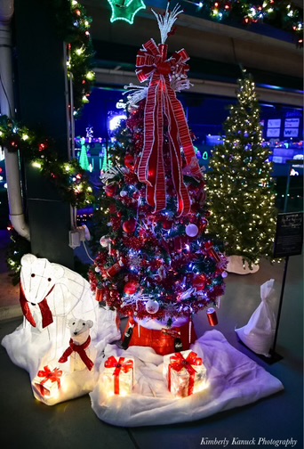 Turning left we walked through the Festival of Trees on the concourse which brought an instant smile to our faces of how each one was decorated. Some were simple with just lights, while others we’re decorated with Squishmallows, Coca-Cola ornaments, dog & cat photos and more!