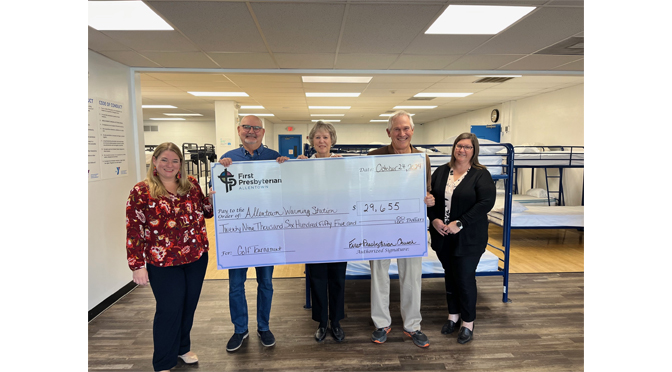 Photo L-R: Kate Cohen, YMCA VP of development for Lehigh Valley region, Craig Evans, Joyce Gobrecht, and Bill White from First Presbyterian Church of Allentown, and Tami Unger, YMCA director of operations for the Allentown branch. (Photo courtesy of River Crossing YMCA)