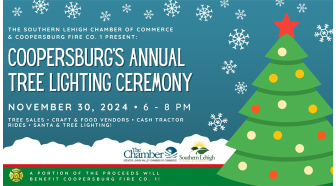 The Southern Lehigh Chamber of Commerce, proud partner of the Greater Lehigh Valley Chamber of Commerce, in partnership with the Coopersburg Borough and Coopersburg Fire Rescue, warmly invite you to experience the magic of the holiday season at this year’s Annual Coopersburg Tree Lighting Ceremony! This year’s event is scheduled for November 30th, 2024 at Coopersburg Borough Hall, located at 5 N Main St, Coopersburg, PA 18036.
