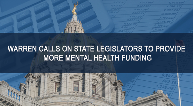 “We’ve done a great job over the years raising more awareness about mental health needs within our collective communities. However, our state government needs to put its money where its mouth is. Let’s not just talk about it and put band-aids on the problem. My colleagues in Harrisburg need to come up with a strategic and long-term plan to truly address mental health funding that will benefit Northampton County and Pennsylvania residents,” Warren said.