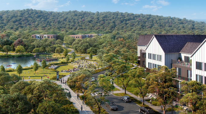 Sixty acres of park and natural land, interconnecting trails, a public dog run and access to the previously hidden Lake Thomas will be at the heart of Promenade Park and complement high-quality residential, senior living options and commercial spaces all configured as a walkable new neighborhood.