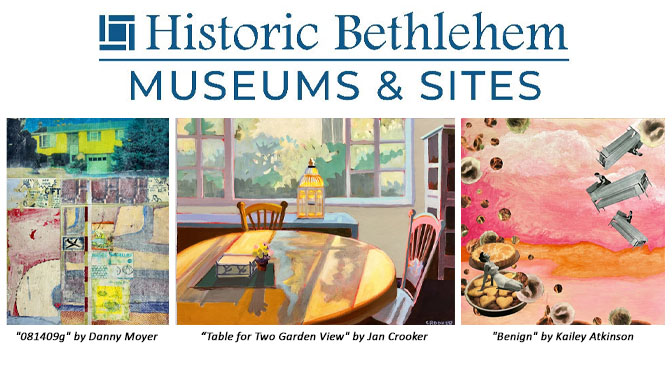 A contemporary fine art show primarily highlighting paintings and collage, Cordially Invited is designed to complement the Kemerer Museum’s current exhibit, “Checking In: Bethlehem’s Alluring Accommodations.” Located on the second floor of the museum, the exhibit showcases the work of Kailey Atkinson, Nancy Bossert, Jan Crooker, Figlio (Ron Bossert), Katie Hovencamp, Thomas Kelly, Danny Moyer, Maryann Riker, Abbey Rosko and Erika Stearly.