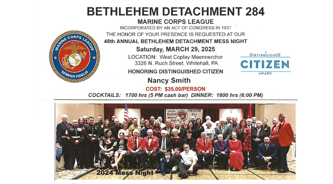 What: The 48th Annual Bethlehem Detachment 284 Marine Corps League Mess Night honoring the Citizen of the Year.