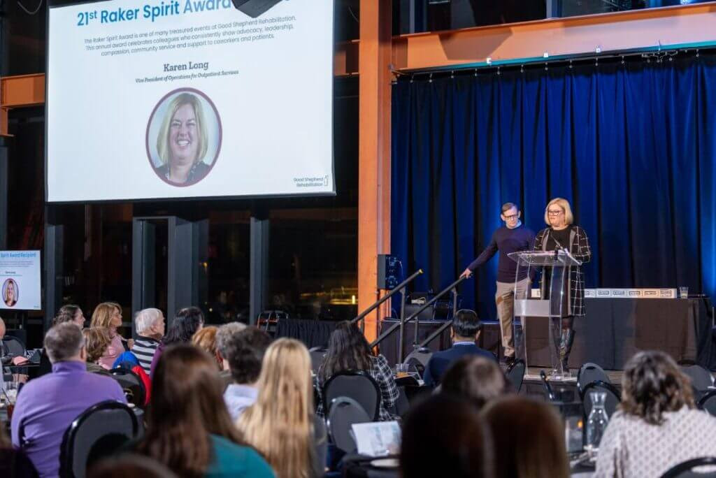 In addition to recognizing team members celebrating milestones — ranging from five to 50 years of service at Good Shepherd — we also celebrated the recipients of the annual Raker Spirit Award and the brand-new Pathfinder Innovation Award.