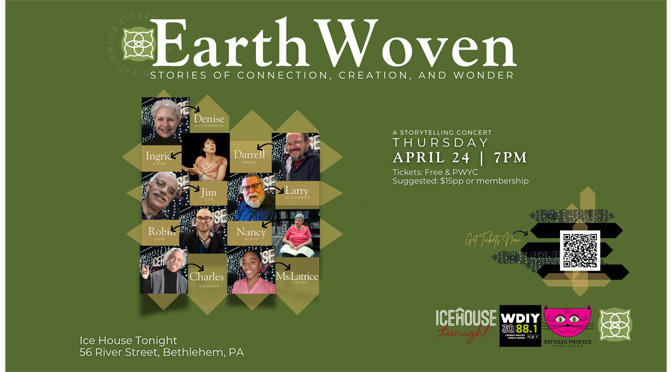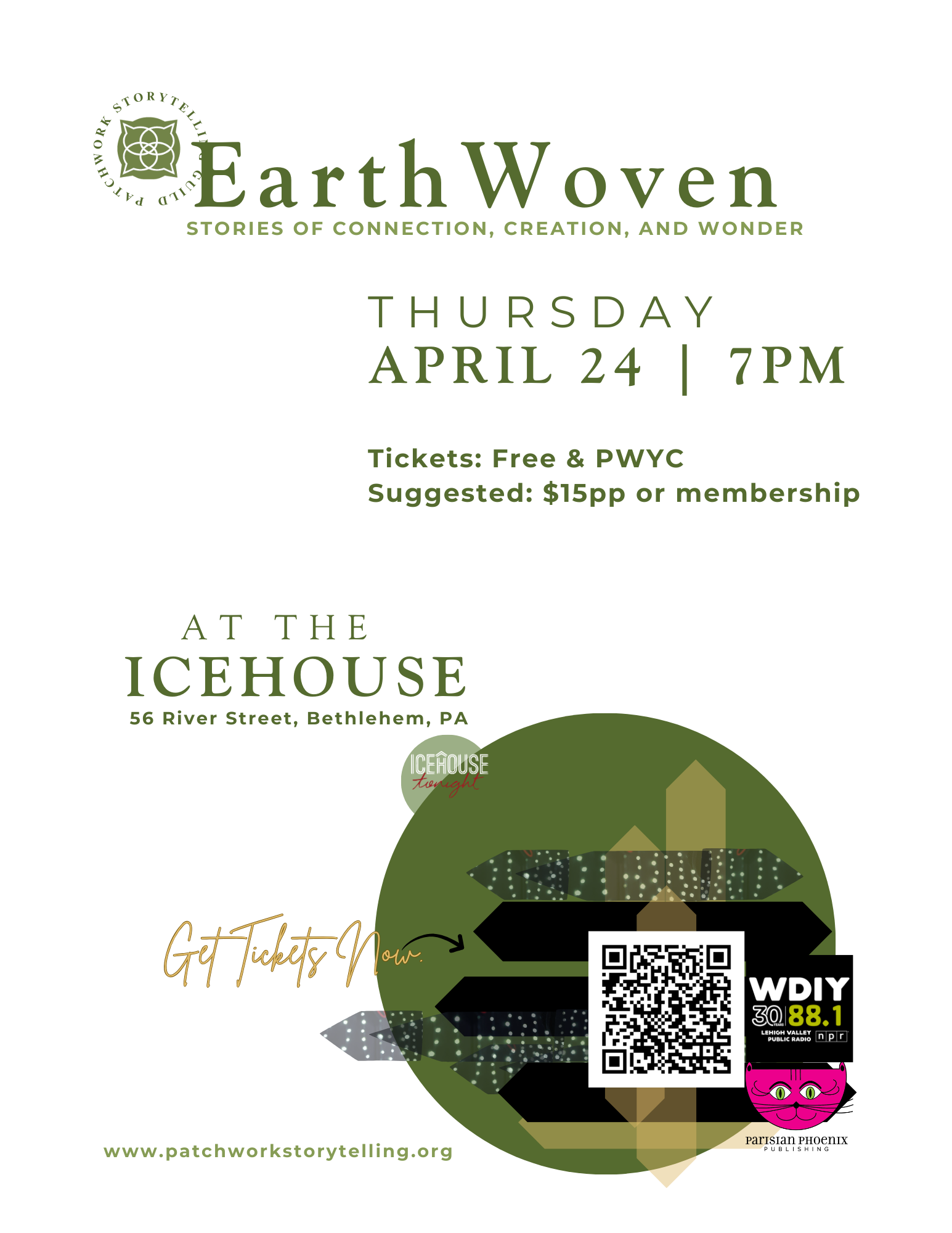 Thursday, April 24 @ 7 PM at the Ice House in Bethlehem for stories about the earth: our relationship with it, our experiences on it.