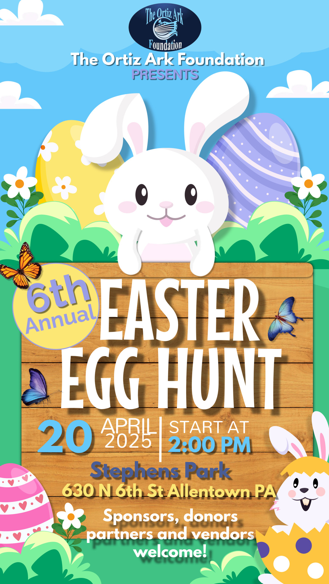 The Ortiz Ark Foundation is thrilled to announce its 6th Annual Easter Egg Hunt, a cherished tradition bringing families and community members together for a fun-filled day of celebration, connection, and giving. This year’s event will take place on Easter Sunday April 20th at Stevens Park, starting at 2pm, and is free and open to the public.