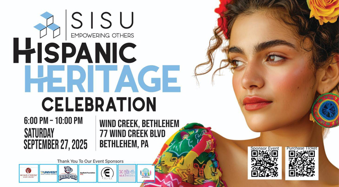 [Bethlehem, PA – August 13, 2025] — SISU Empowering Others, the nonprofit dedicated to uplifting underserved communities through culturally responsive wellness programs, mentorship, and advocacy, proudly announces its 2025 Hispanic Heritage Celebration. The event will take place Saturday, September 27, 2025, from 6:00 PM to 10:00 PM at the Wind Creek Event Center – Monocacy Room, Bethlehem, PA.This public event will celebrate the richness and diversity of Hispanic cultures through live music, dynamic dance performances, traditional cuisine, cultural exhibits, and inspiring speakers. Beyond celebration, this is a fundraising event to support SISU’s life-changing programs serving vulnerable individuals, youth, and families across the Lehigh Valley.
