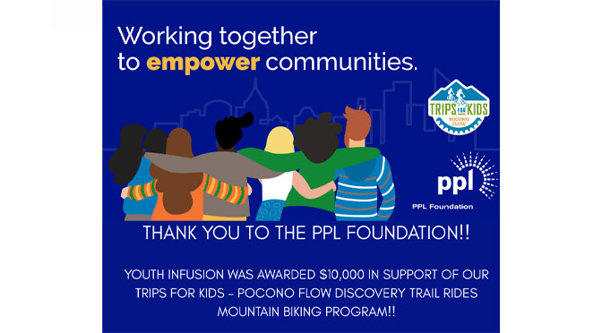East Stroudsburg, Pa. (September 1, 2025) – Youth Infusion, Inc. is pleased to announce it has received a $10,000 grant from the PPL Foundation. These funds will support the Trips for Kids – Pocono Flow Discovery Trail Rides, a mountain biking program that introduces young people and families in Northeast Pennsylvania to the outdoors while teaching environmental awareness, sustainability, and healthy living.