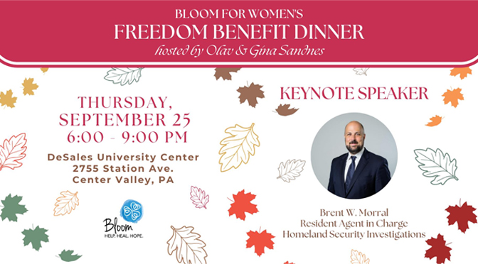 Bloom for Women, Inc. will host its 3rd Annual Freedom Benefit Dinner to raise critical support for its mission of providing sanctuary, healing, and employment opportunities for survivors of sex trafficking and sexual exploitation in the Lehigh Valley.