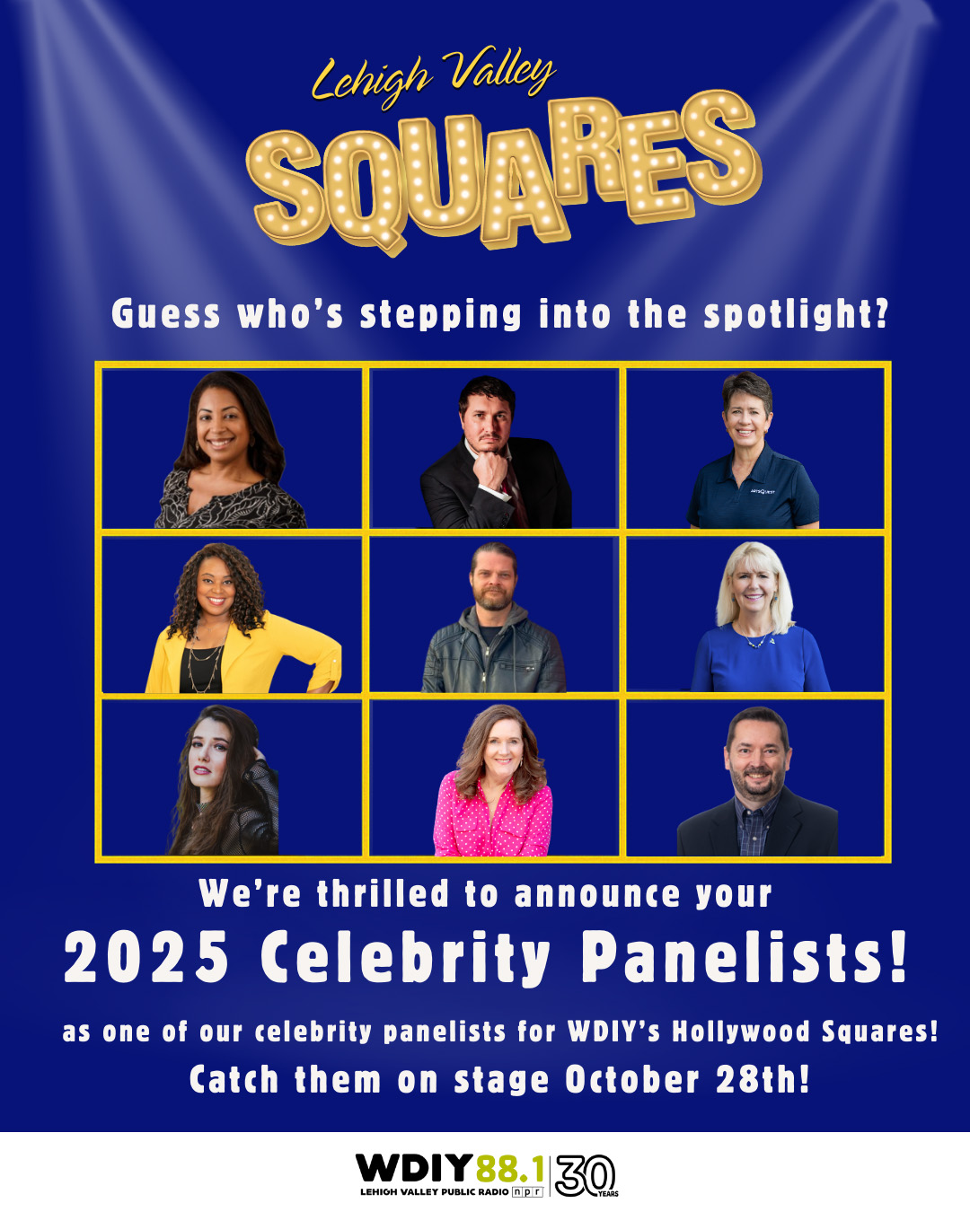 Lehigh Valley, PA — WDIY 88.1 FM, Lehigh Valley Public Radio, is excited to announce Lehigh Valley Hollywood Squares presented by Air Products — a one- of-a-kind, live game show fundraiser that brings together local celebrity panelists and audience contestants for a night of trivia, fun, and fundraising in support of WDIY’s mission. The event is the station’s most ambitious live event in our 30-year history.