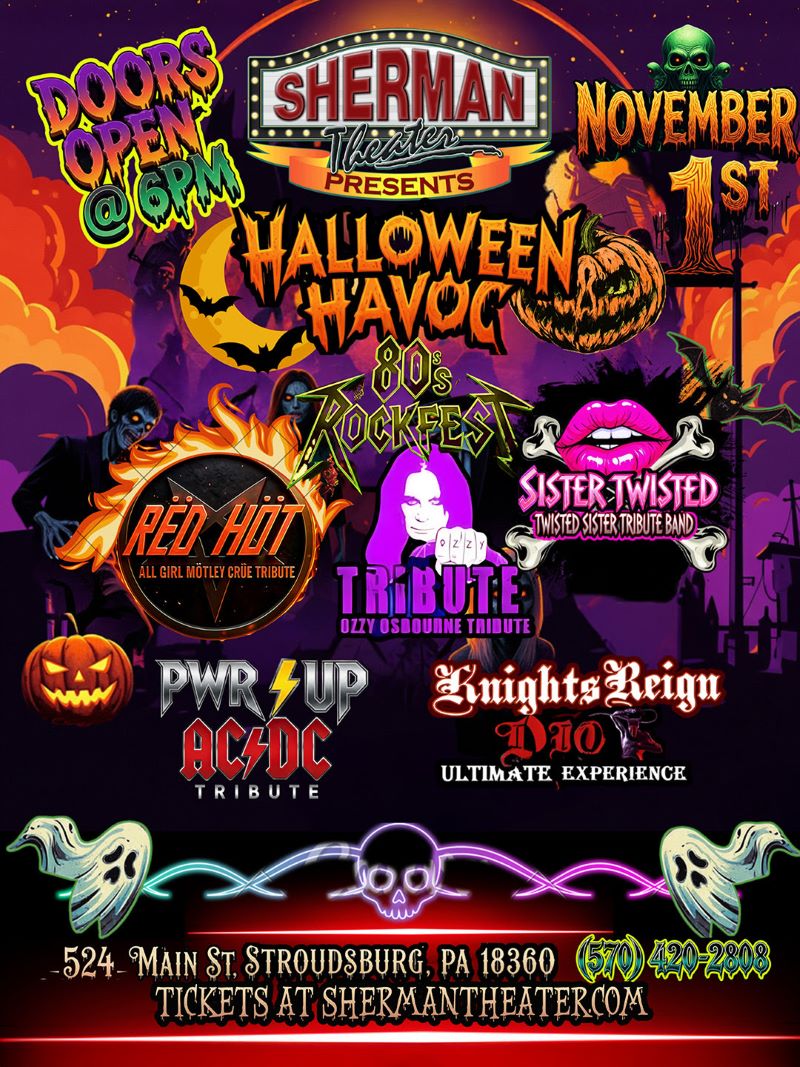 Stroudsburg, PA – The Sherman Theater is turning back the clock for a night of pure rock and roll mayhem with the 80’s Halloween Rockfest on Saturday, November 1. Featuring five powerhouse tribute bands, this event promises to deliver all the volume, attitude, and arena-sized energy of classic Hard Rock and Metal’s golden age.
