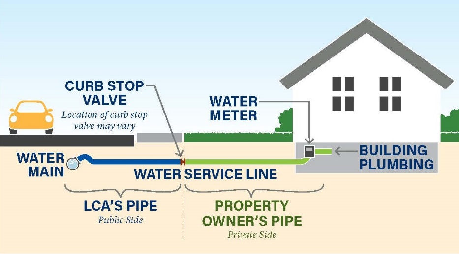 - Public side: LCA owns the pipe from the water main to the curb box.
