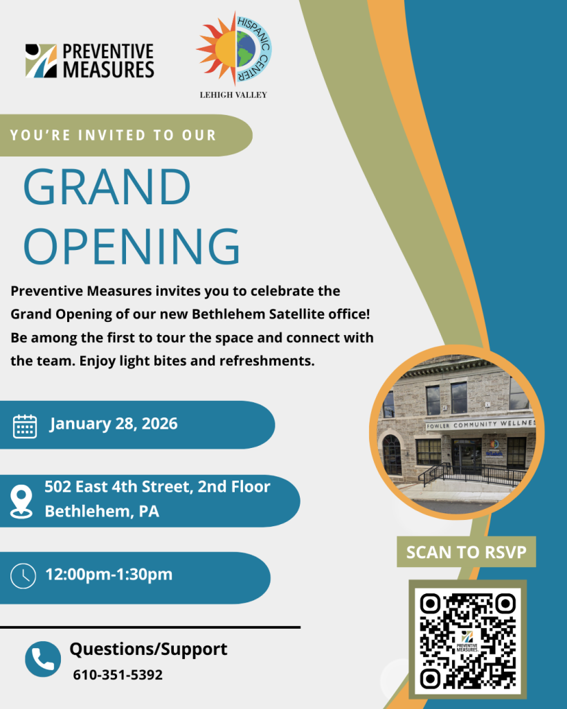 Bethlehem, PA — January 28, 2026 — Preventive Measures announced the opening of its new Bethlehem satellite outpatient mental health office on the Southside, in partnership with Hispanic Center Lehigh Valley. The expansion reflects a community-driven response to a clear gap in outpatient mental health services and a shared commitment to collective impact and culturally responsive care.
