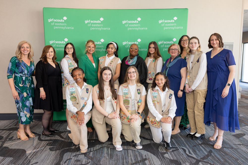 Left to Right (top row): Krista Ortwein (TTL Co-Chair), Jennifer Alpha, Girl Scout Gillian S., Kelly A. Chando, Girl Scout Jade L., Tanya Tyler, Girl Scout Kaelin C., Dr. Elizabeth Meade, Kim E. Fraites-Dow (GSEP CEO), Girl Scout Hannah D., Katie Santana (TTL Co-Chair)