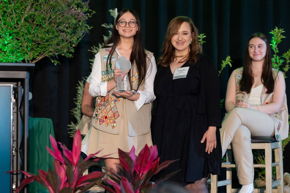 Guests enjoyed a seated awards program and the Campership Paddle Raise to help provide hundreds of Girl Scouts throughout the Lehigh Valley region with financial support so they can experience all Girl Scout camp has to offer. Four Girl Scouts who were paired with each honoree for a “shadow day” shared what they learned about careers, networking, and leadership.