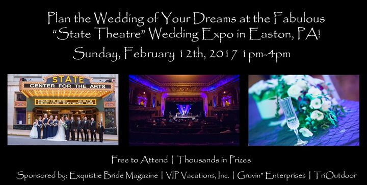 Plan the wedding of your dreams at the Fabulous “State Theatre” Wedding Expo. All of the regions top vendors under one roof who will help you plan the fairy tale day you have always dreamed of. Sponsored by: VIP Vacations, Gruvin’ Enterprises, Tri-Outdoor and Exquisite Bride Magazine. Free to attend! Visit: http://www.exquisitebride.net to register.