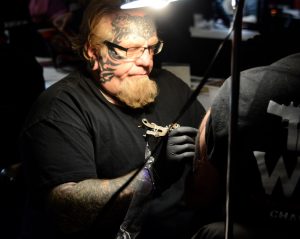 Among those in the massive crowd were tattoo virgins. Reggie, of Satori Ink, commented, “We’re not really seeing anything surprising, as far as what our clientele wants done, but we’re seeing a lot more first timers, tattoo virgins. “ Ali agreed, “This is the third year we’ve been here. The weekend is very successful for us.”