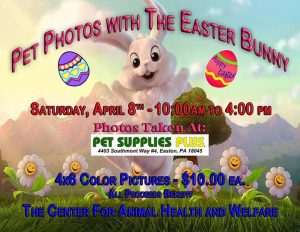 Bring in your pets for a photo with the Easter Bunny! $10 for 4×6 and all proceeds benefit The Center.