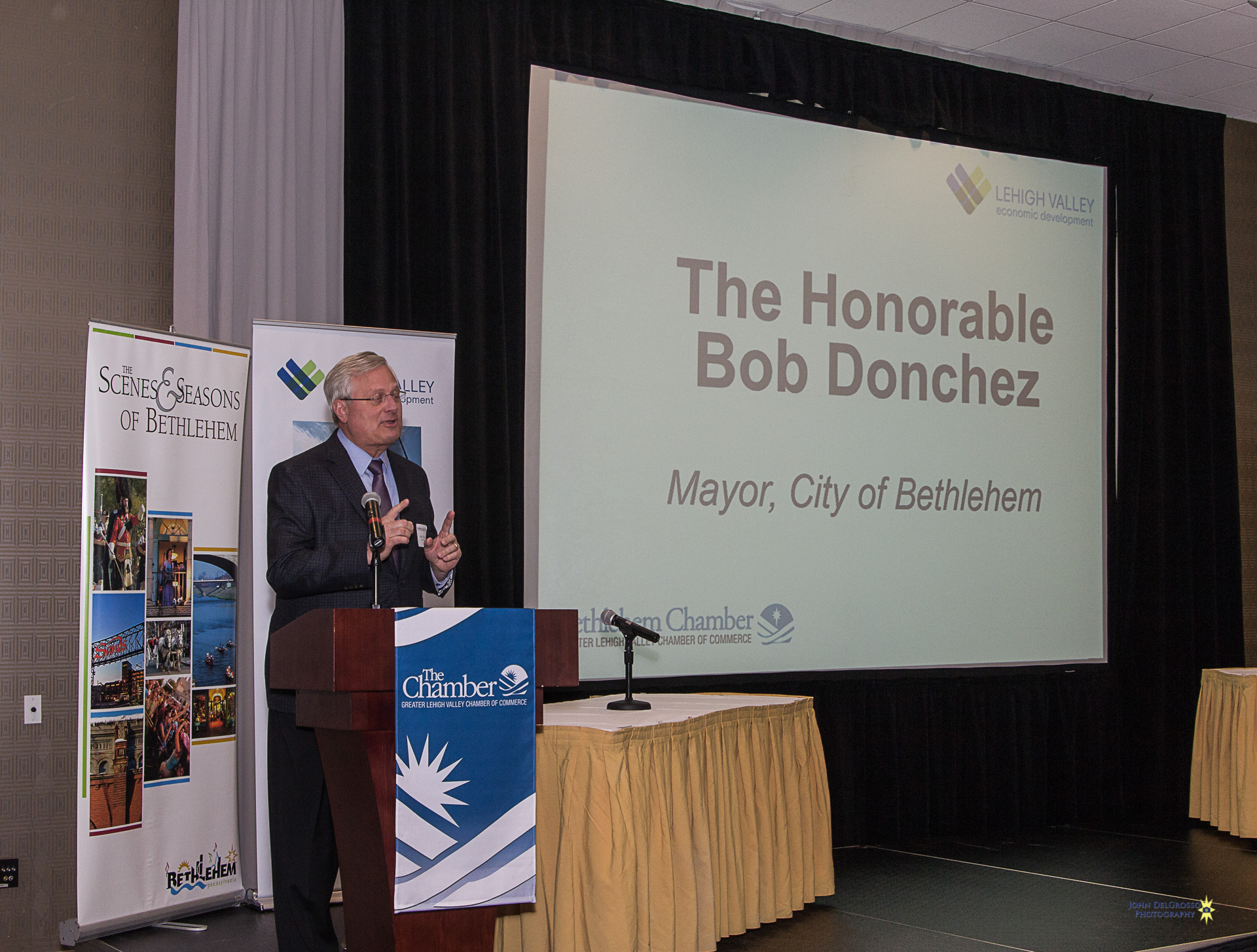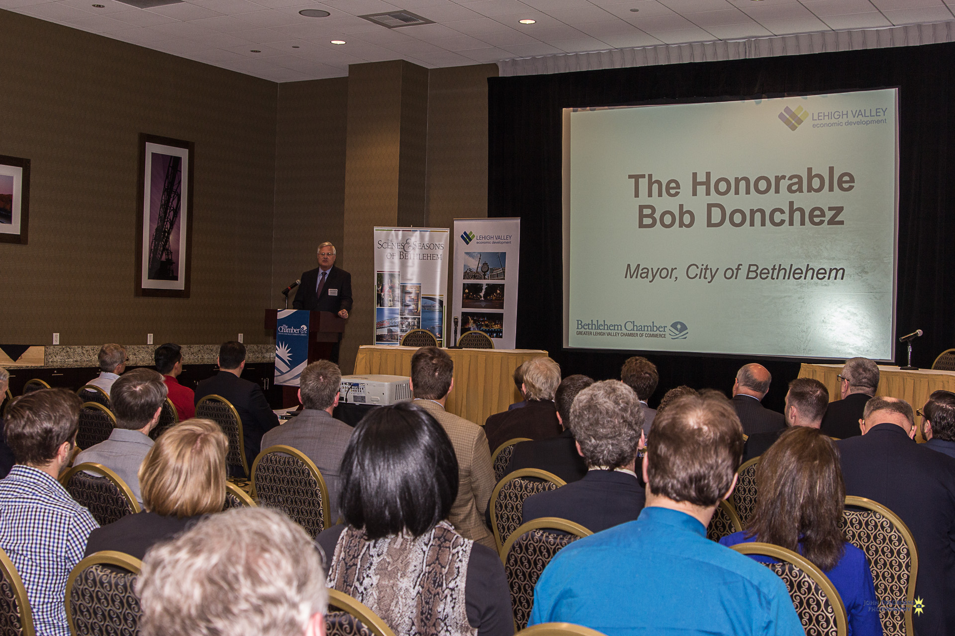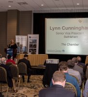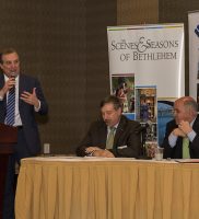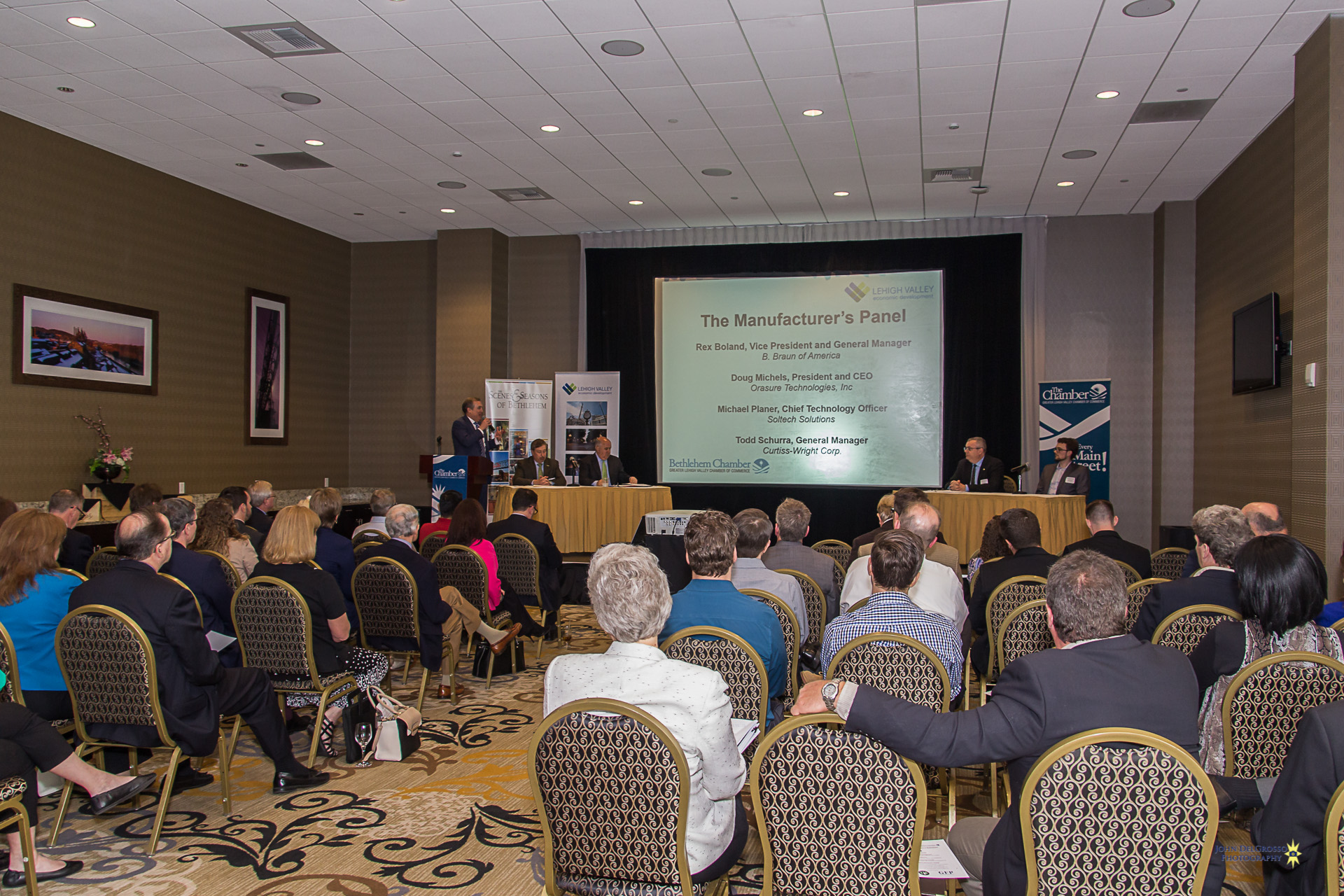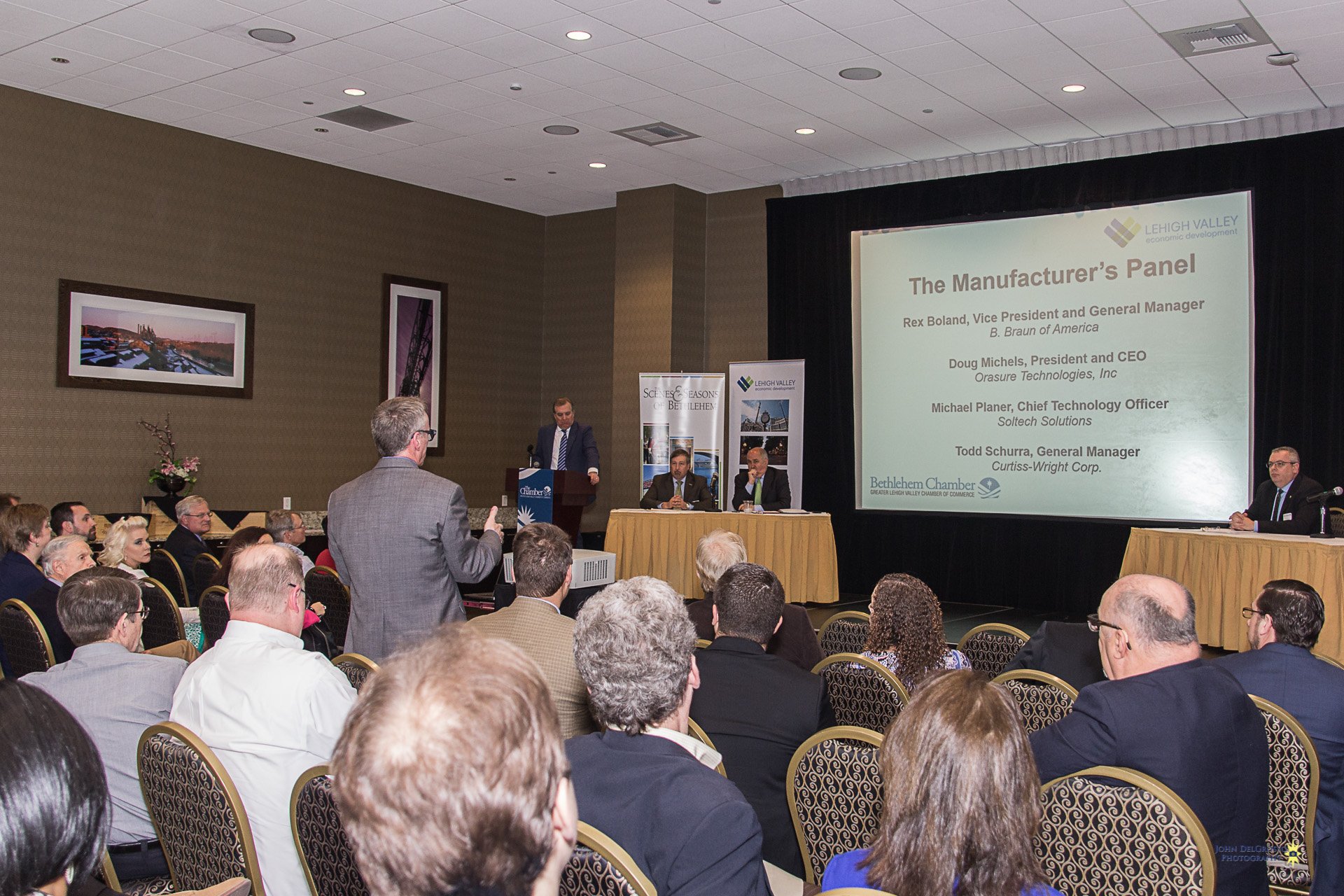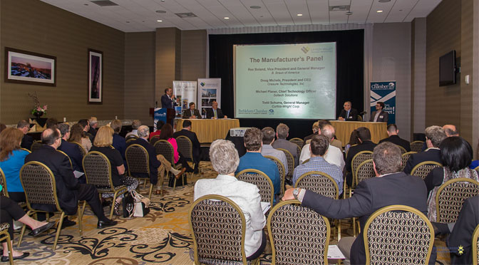 The Chamber and the LVEDC brought together some of the greatest minds from the local manufacturing scene on Wednesday, for a discussion about the manufacturing climate in Bethlehem. The informative event was kicked off with a warm welcome to all in attendance by Bethlehem Mayor Bob Donchez. The event was then turned over to, the President of the LVEDC, Don Cunningham, who led the evenings discussion along with a panel of experts consisting of Rex Boland V.P & G.M of B. Braun of America, Doug Michels President & CEO of Orasure Technologies Inc. Todd Schurra , G.M of Curtiss- Wright Corp and Michael Planer , Chief Technology Officer of Soltech Solutions.