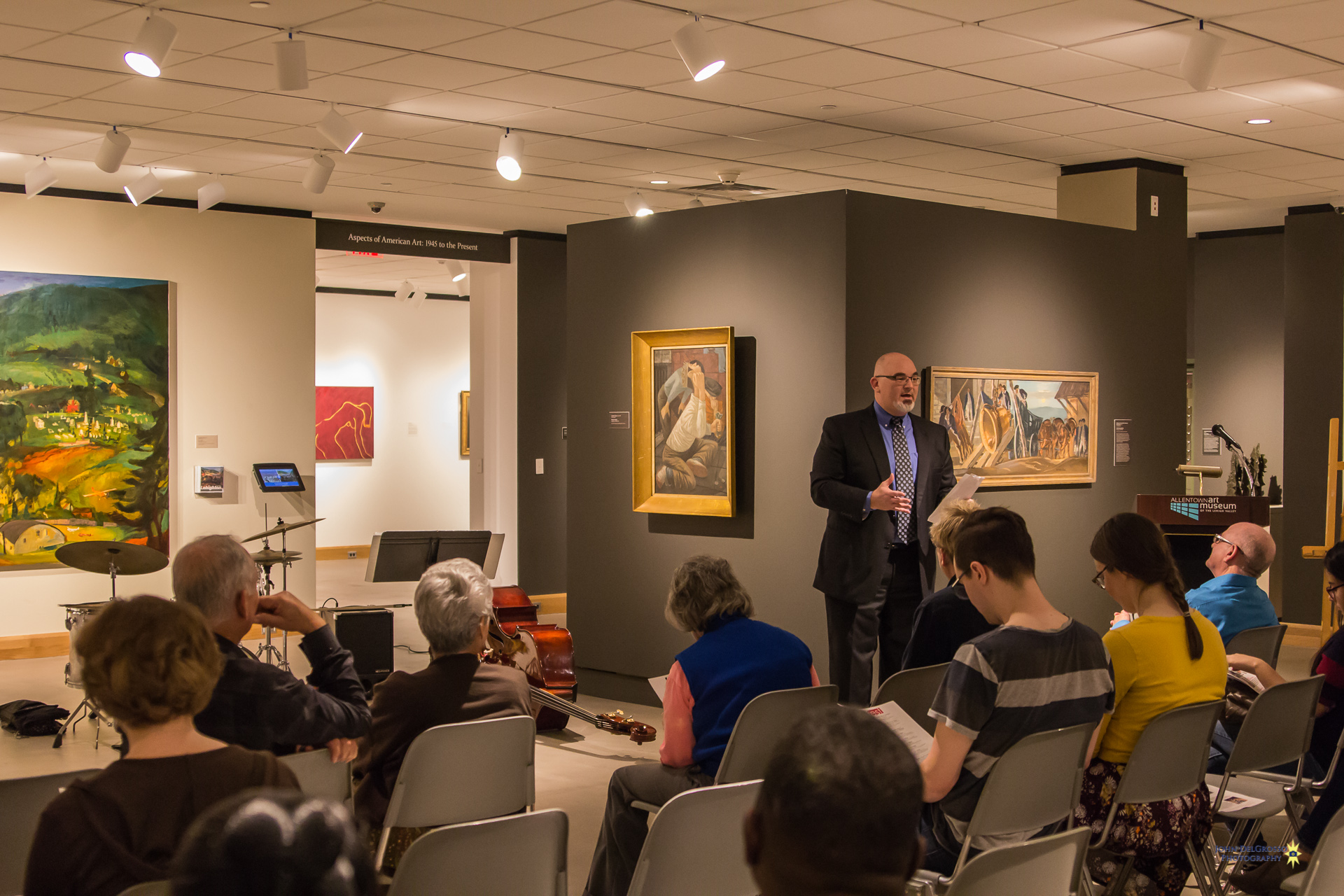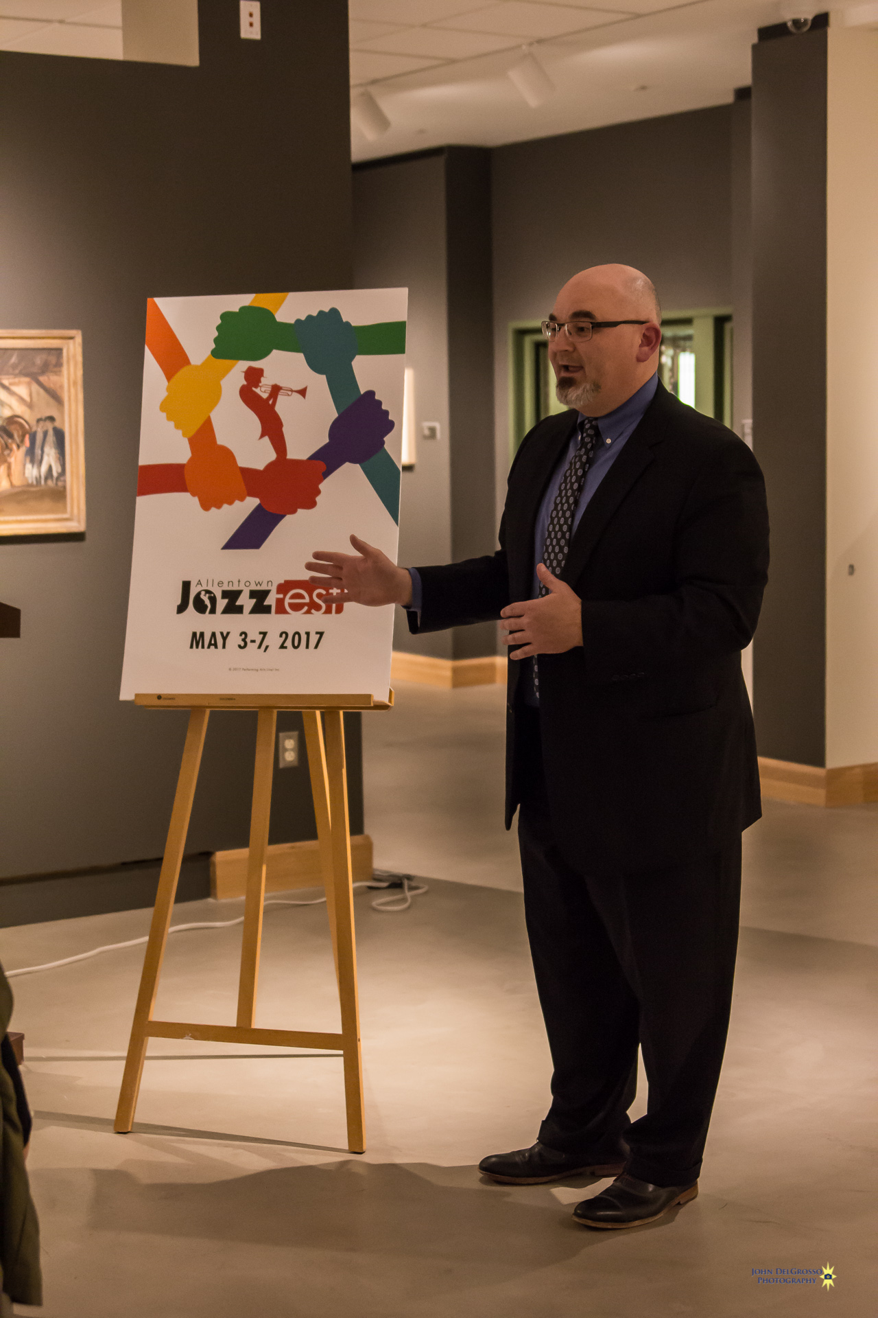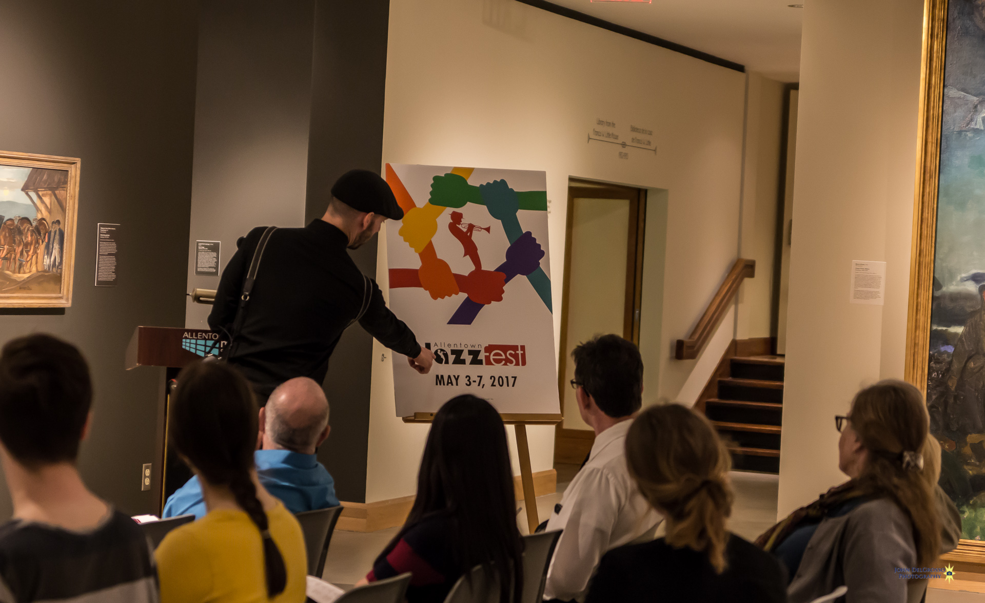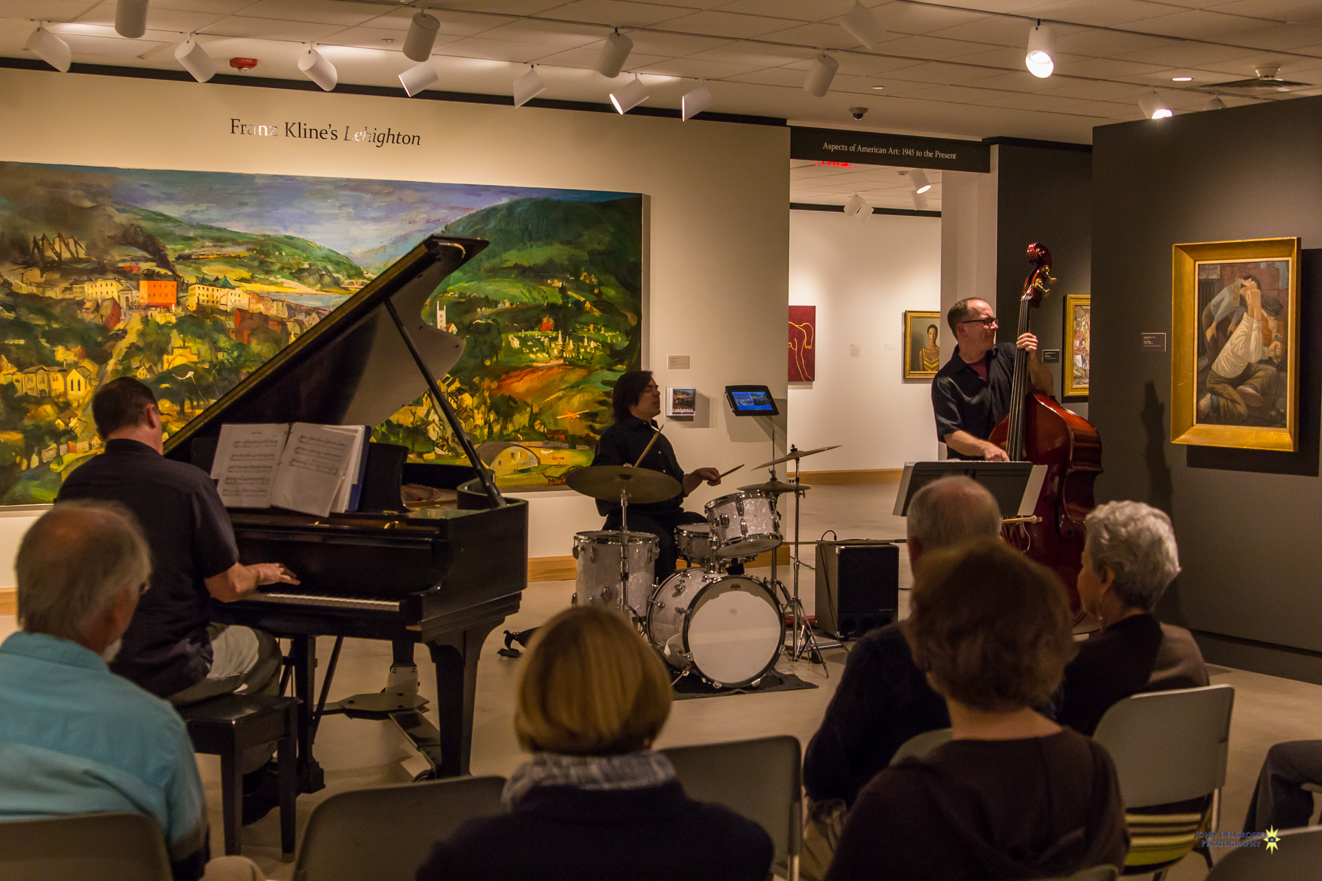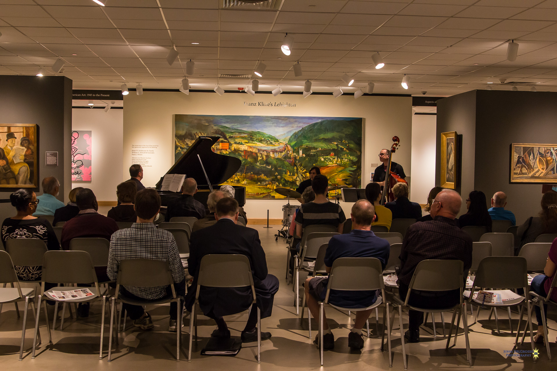Allentown Jazzfest is ready to kick off its third season. To get things rolling they gave guests a preview of this year’s lineup and the artwork that was designed for the 2017 festival. The Trexler Gallery in the Allentown Art Museum was host to Thursday nights event. Attendees were surrounded by amazing works of art like the masterfully restored Franz Kline’s “LEHIGHTON” mural which was the back drop for the evenings performers, The Dan DeChellis Trio.