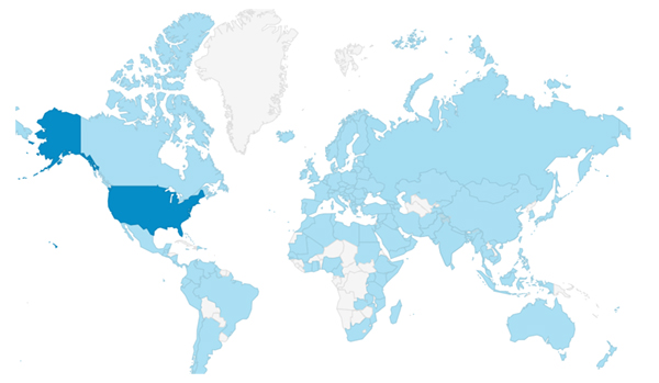 Now it is true some of our visitors are from other parts of the world. However over 90% of our site traffic is from right here in the Lehigh Valley region. Here are a few maps that illustrate a break down from Google Analytics of where our visitors come from, starting with Globally down to Pennsylvania. The darker blue colors indicate where more visitors are located.