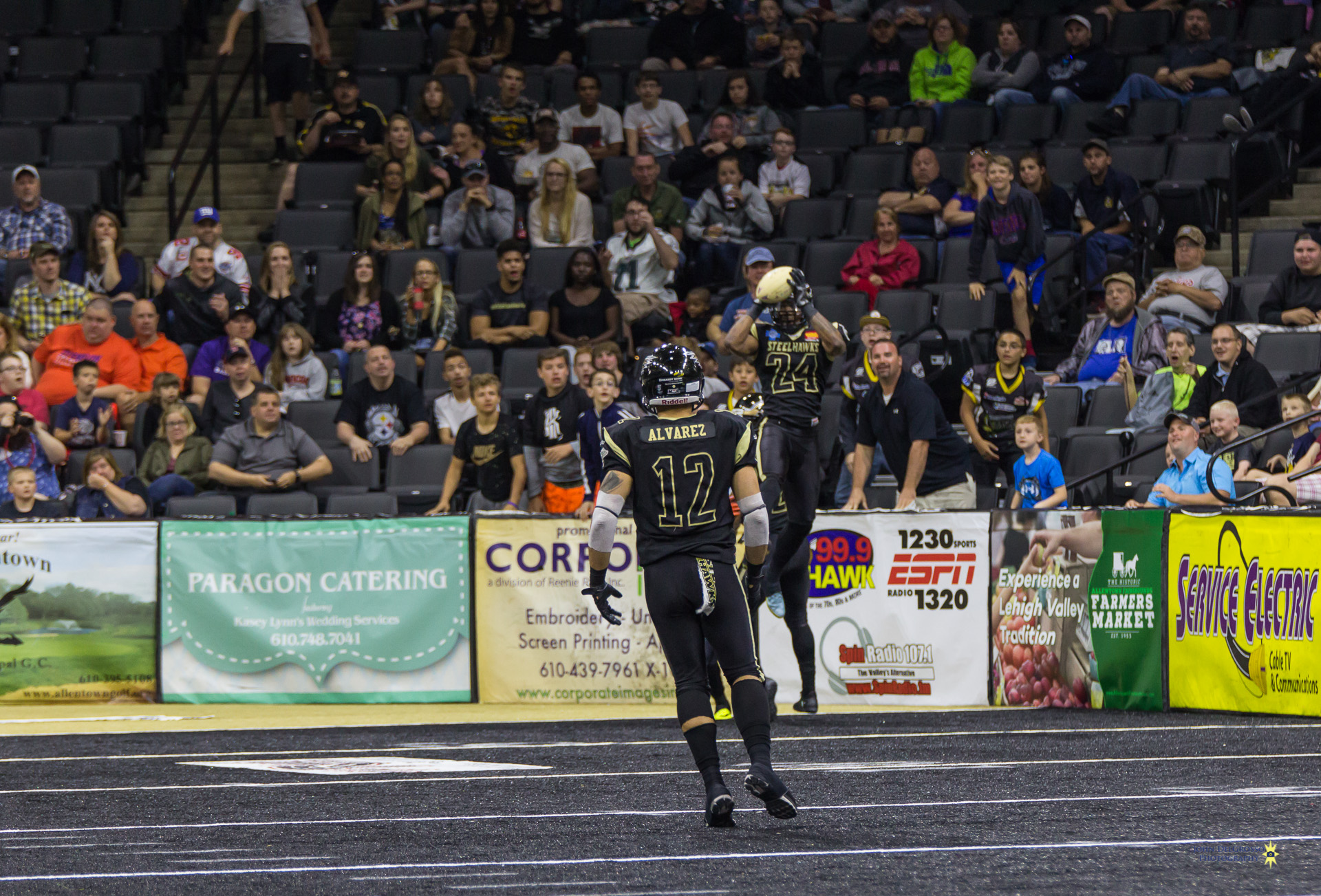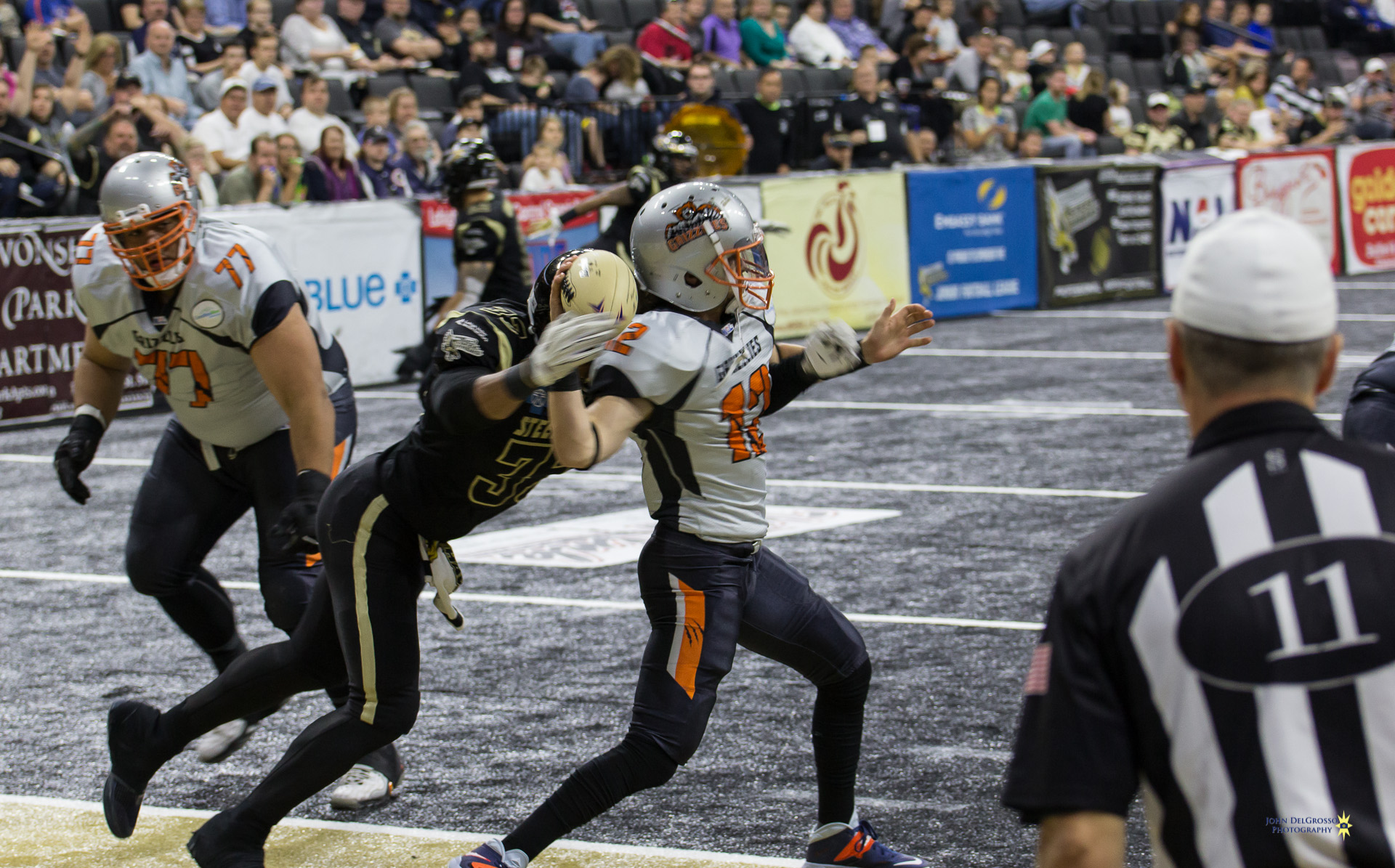 4th qtr starts with a TD Steelhawks! Piekarski with a great grab, bringing the score to 67-39 LV, crowd was loud tonight!